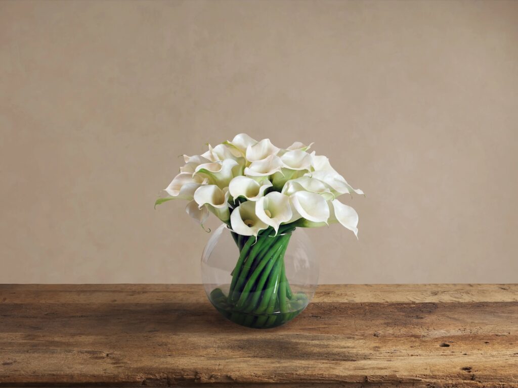 Everyone loves flowers, but real lilies lose points for fading fast—and being dangerous for pets! Sub in these hand-painted faux calla stems suspended in crystal-clear “water” for a fresh bouquet that never withers.